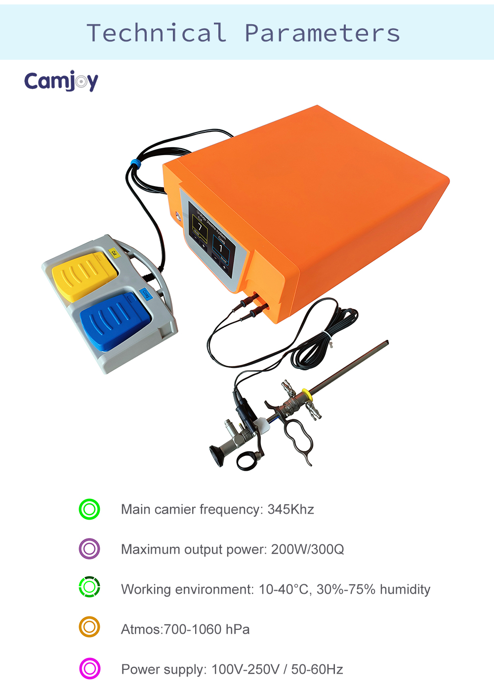 - Ножной переключатель с двумя педалями: Переключение между резкой и коагуляцией без помощи рук.